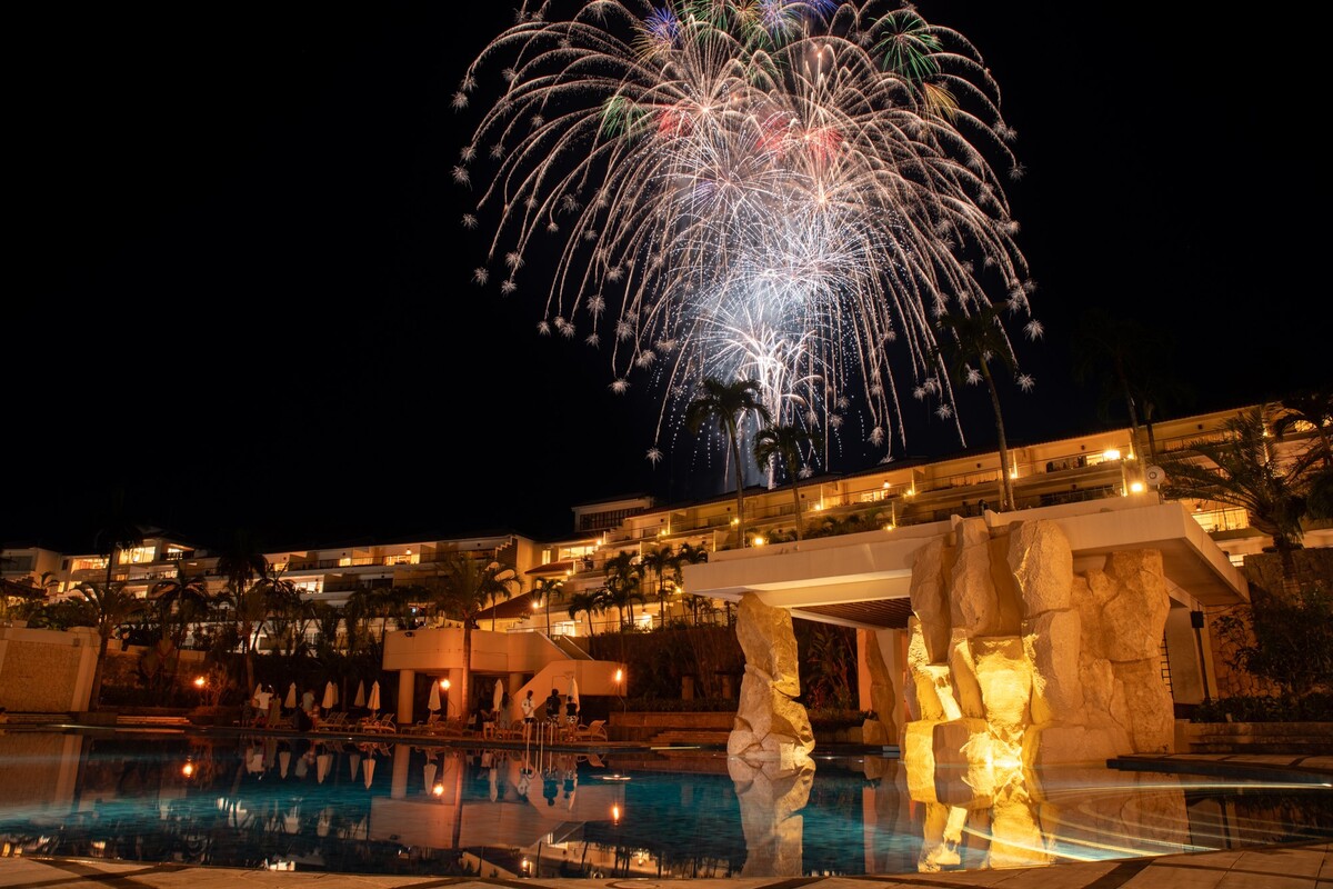 さらに、大空を彩る打ち揚げ花火や、お祭り気分で楽しめるリゾート縁日、大迫力のエイサー演舞などのイベントが、カヌチャの夜を盛り上げます。