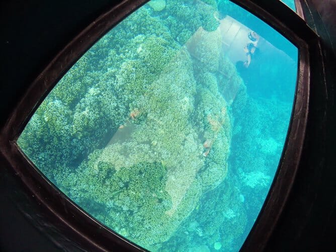 アオサンゴグラスボート 乳児可幼児可小学生可 2026/1/5(月)~2/28(土)の期間は、休業いたします。 幻の縄文アオサンゴ群集に出会う 熱帯魚はもちろん、希少な縄文アオサンゴなど、海中の様子を観察できる水中遊覧船です。小さなお子様連れでも楽しめます。 基本情報(2025年度) 参加基準年齢制限なし 開催期間通年 ※2026/1/5(月)~2/28(土)は休業 開催時間9:00、11:00、13:00、15:00 所要時間30分 催行人数~12名 料金(税込)■ご宿泊のお客様 大人 3,520円、小人 2,970円 ※2歳以下は無料 ■ご宿泊以外のお客様 大人 3,850円、小人 3,300円 ※2歳以下は無料 受付事前予約制 備考・潮の干満により出発時間が変更になる場合があります。 ・2歳以下は無料ですが、大人1名につき2歳以下1名までとなります。 ・当日の海況によりアオサンゴをご覧いただけない場合もございます。 ご予約・お問い合わせ代表/TEL:0570-018880 Berryカウンター/内線:86 [海開き~10/31] 8:00~18:00 [11/1~海開き前日] 8:00~16:00 ※2026/1/5(月)~2/28(土)の期間は休業のため、お問い合わせなどへのご対応は、1週間ほどお待ちいただく場合がございます。