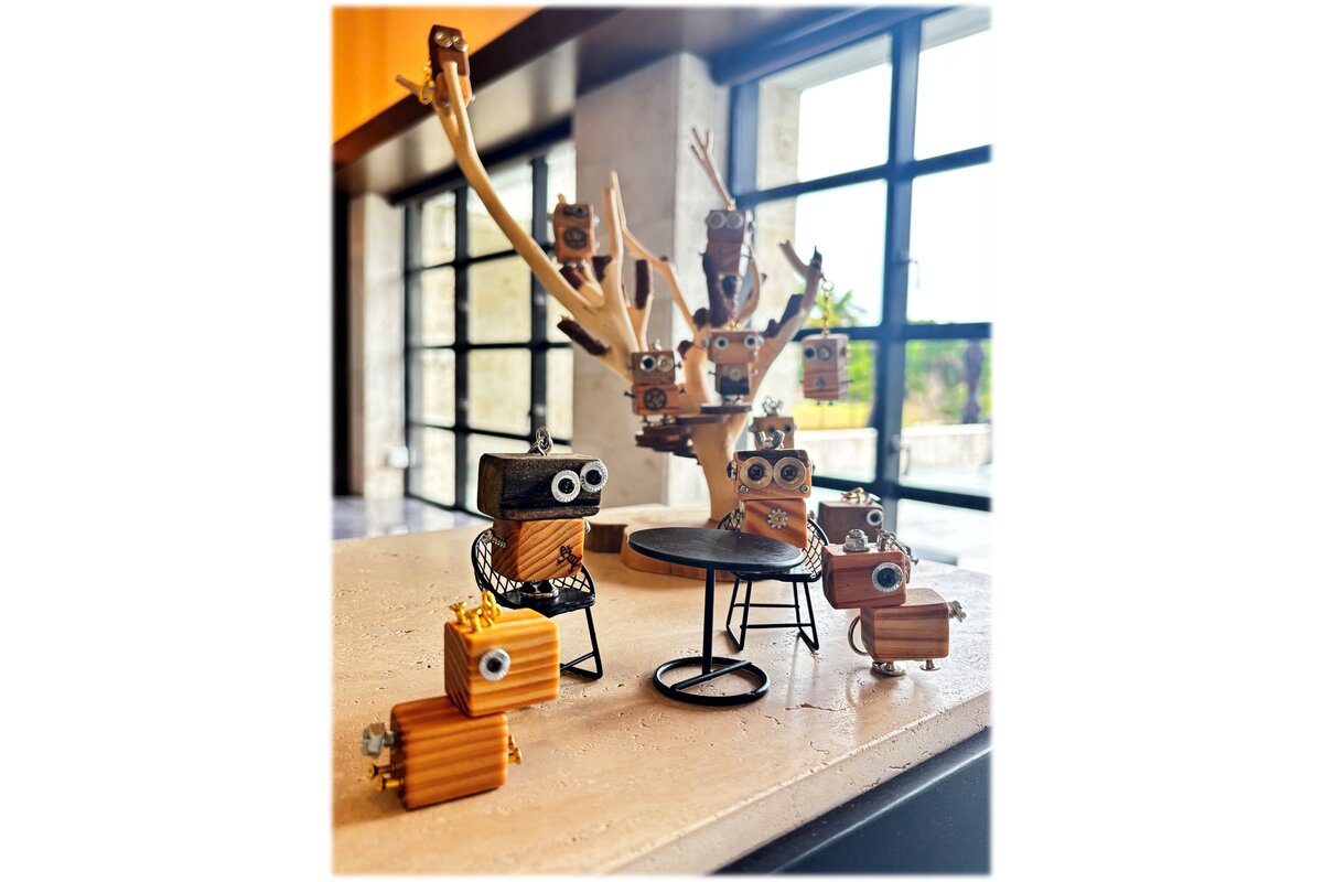 さまざまな沖縄の天然木からお好きな1本を選んで、世界に1本だけのオリジナルのボールペンを作ったり、廃材になる予定だった木とさまざまなパーツを組み合わせて、かわいいシルエットのロボットキーホルダーを作ったりと、お好みに応じてお選びいただける2種の体験メニューをご用意いたしました。